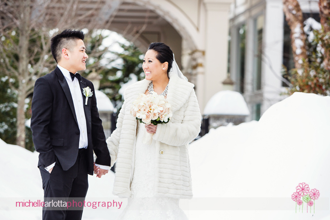 if you are going to get married in the winter months, you’ve got to be a laid back, go-with-the-flow type as you never know what mother nature will bring. we’ve had a cold and snowy winter, but fortunately abby and mike didn’t have to deal with a crazy snowstorm on their wedding day at the westmount country club. while it was quite cold, abby and mike were total troopers hanging outside to get some pictures….